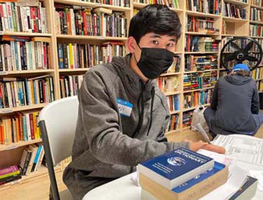 I started volunteering at the Alameda County Food Bank with my family when I was seven. In high school, I started volunteering at the Berkeley Food Network. In this photo I'm separating spoiled and non-spoiled fruits and vegetables. I’m always inspired when I volunteer at my local food bank.